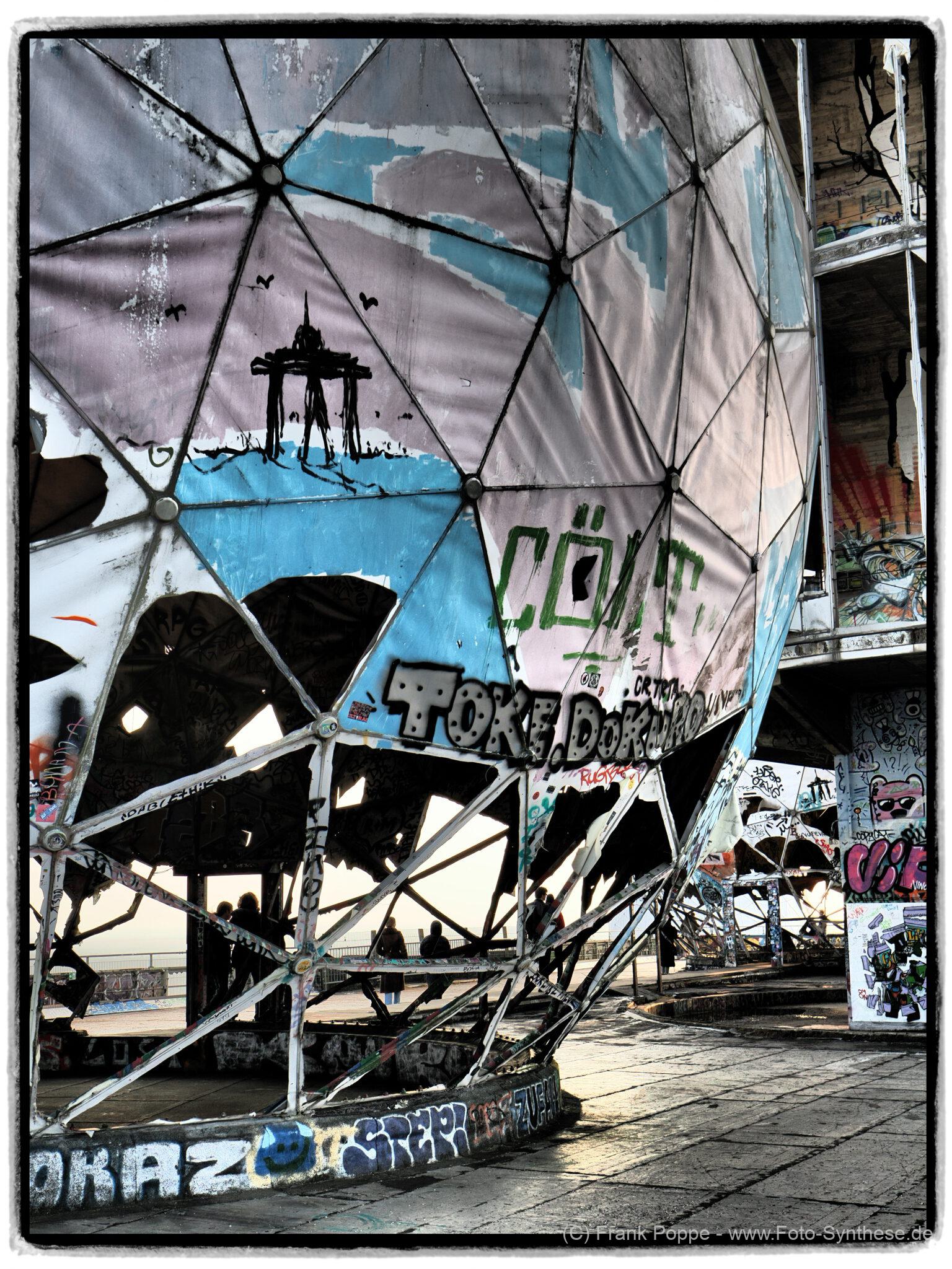 Die zerfallenden Kuppeln, rostigen Metallstrukturen und mit Streetart überzogenen Wände bieten spannende Kontraste, die sich perfekt für außergewöhnliche Licht- und Schattenkompositionen eignen. Besonders die wechselnden Perspektiven zwischen den kunstvoll bemalten Innenräumen und der weiten Aussicht über Berlin eröffnen Fotografen eine Vielzahl an kreativen Möglichkeiten. Je nach Tageszeit und Wetter entstehen unterschiedliche Stimmungen, die von mystisch bis surreal reichen – ein Paradies für jeden, der urbane Kunst durch die Linse festhalten möchte.
