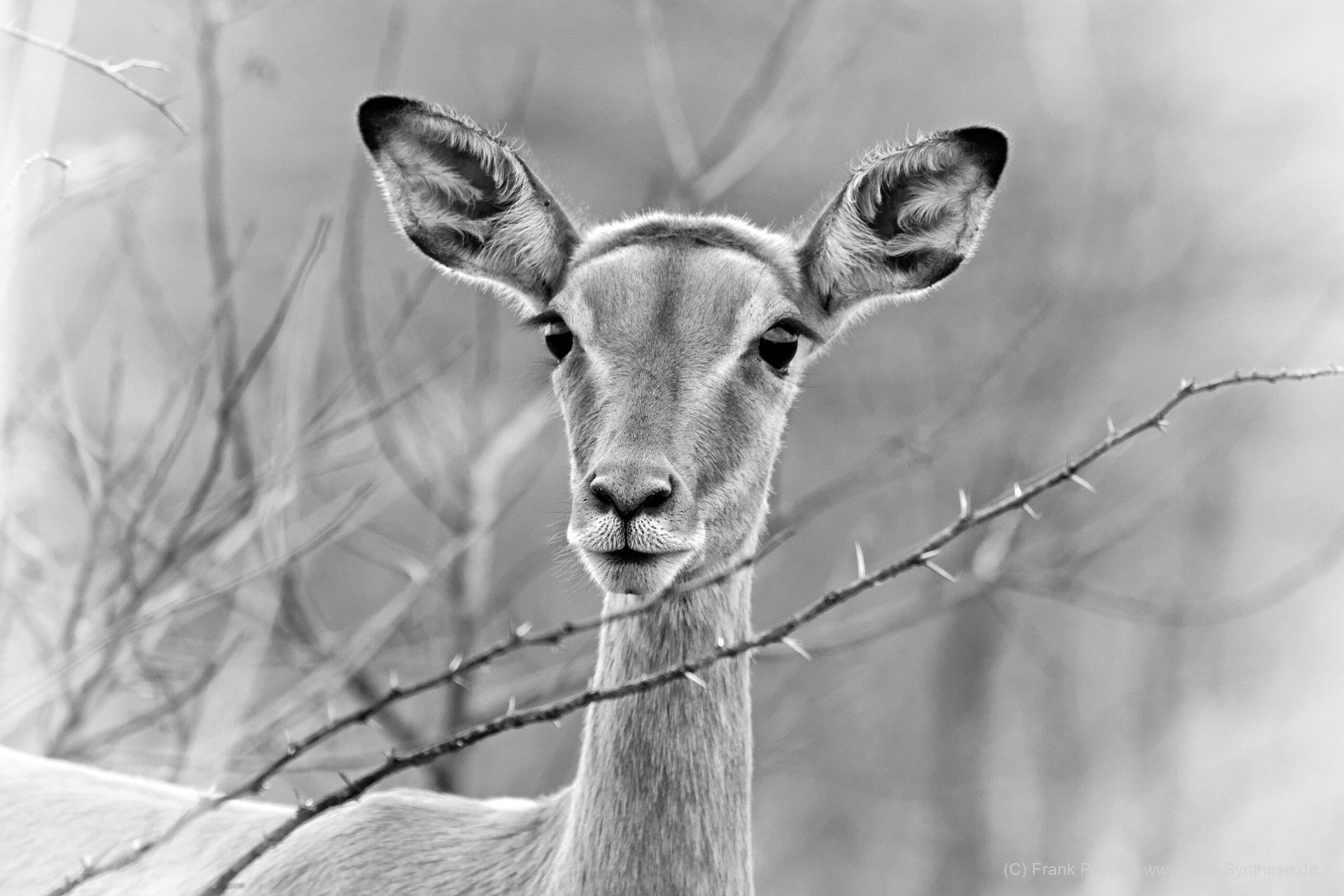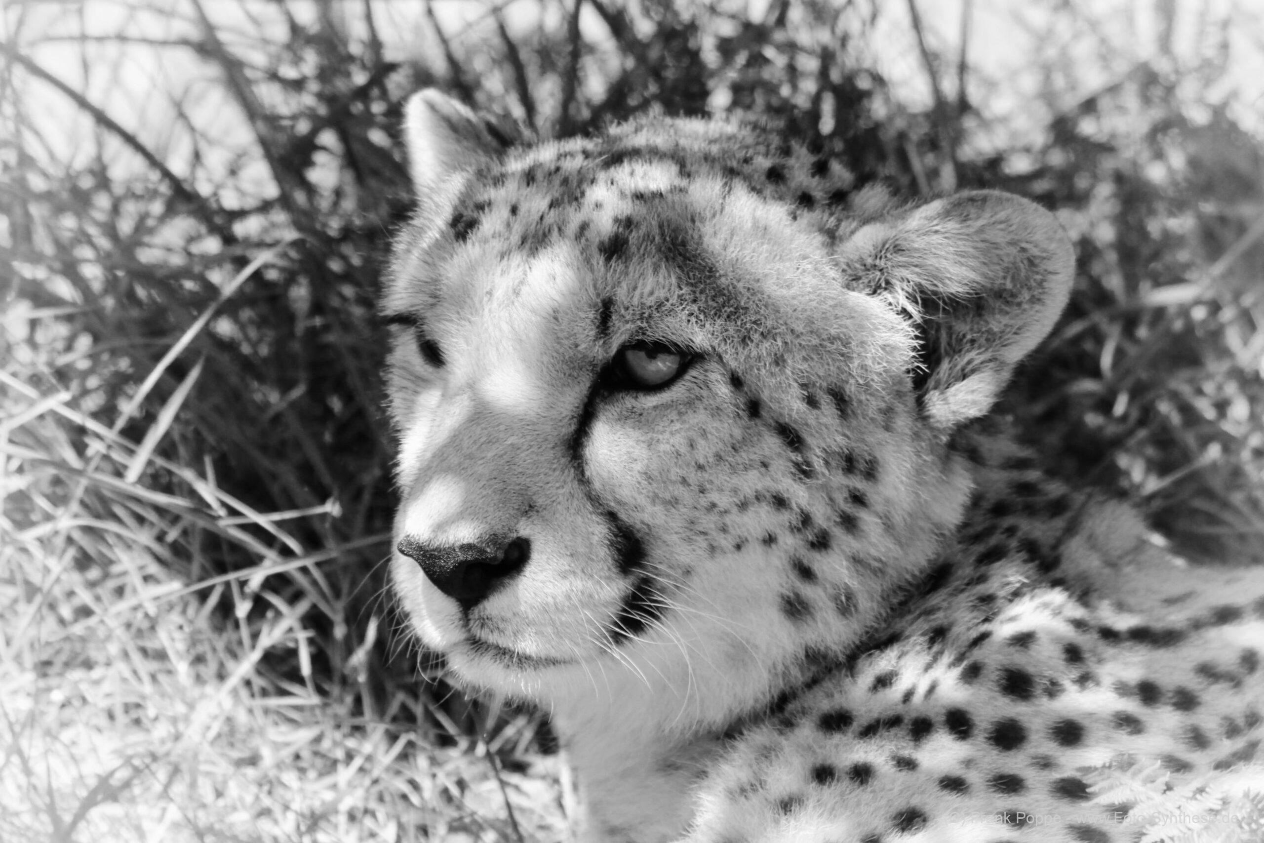 Die Erstellung von Tierporträts in Schwarz-Weiß auf einer Safari in Südafrika bietet eine einzigartige fotografische Perspektive und stellt sowohl besondere Reize als auch Herausforderungen dar. Der besondere Reiz liegt in der Möglichkeit, die Essenz der Tiere durch Reduktion auf Licht und Schatten zu betonen, ohne von Farben abgelenkt zu werden. Schwarz-Weiß-Fotografie hebt die Texturen, Kontraste und feinen Details der Tierhaut, Felle und Augen hervor, wodurch die emotionale Ausdruckskraft und die charakteristischen Merkmale der Tiere eindrucksvoll zur Geltung kommen. Diese Art der Fotografie kann die Stärke und Anmut der Tiere auf eine zeitlose und künstlerische Weise vermitteln.