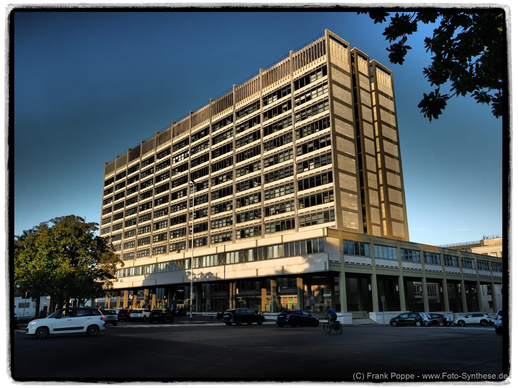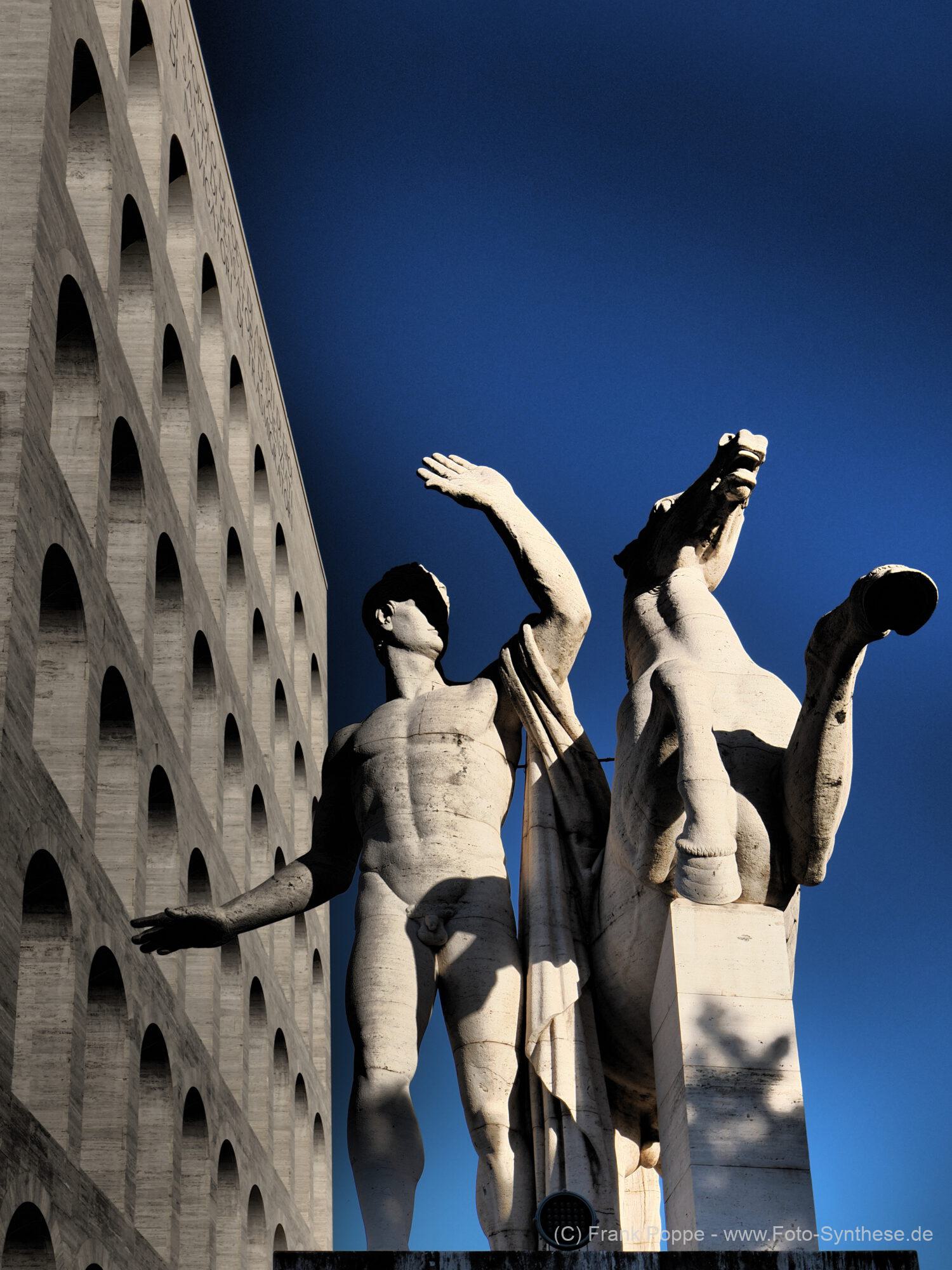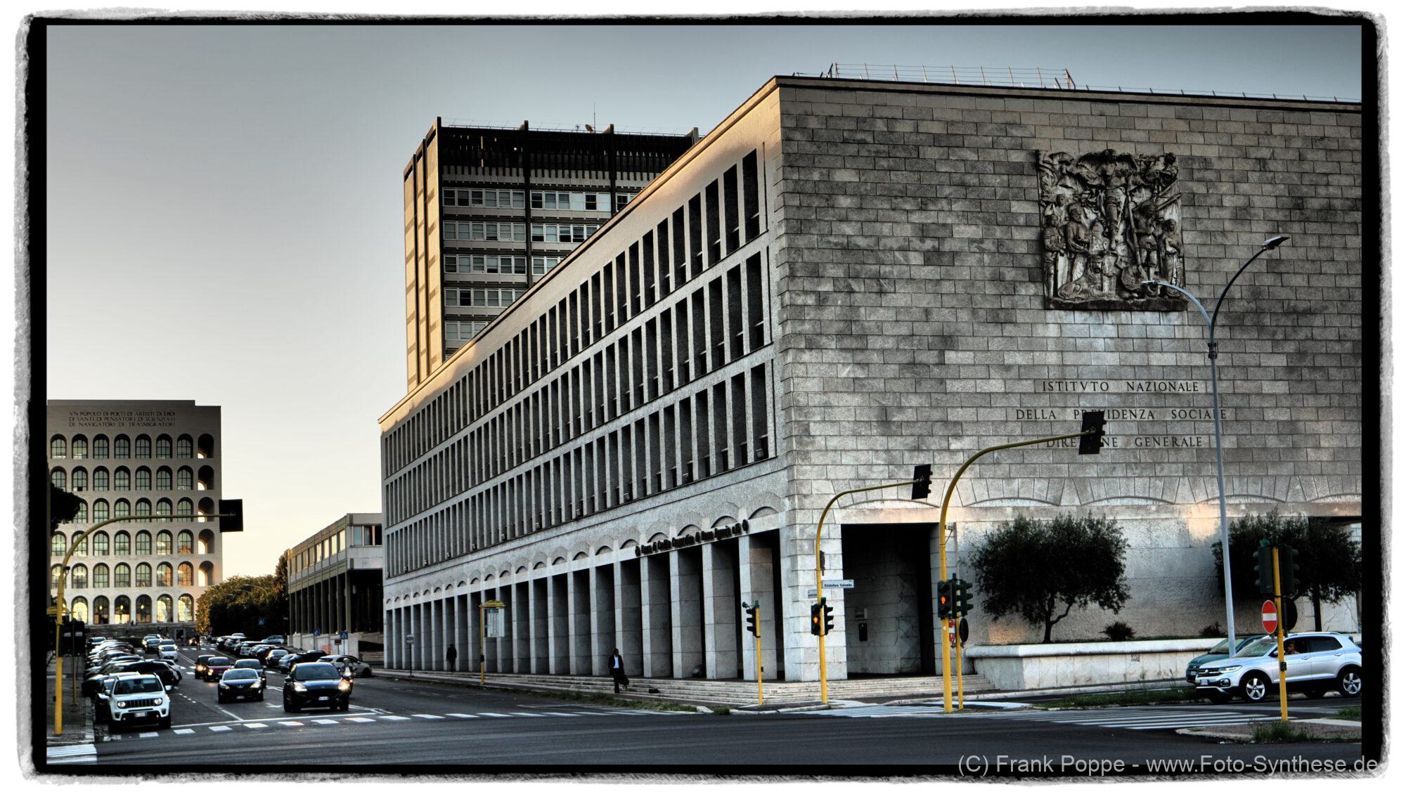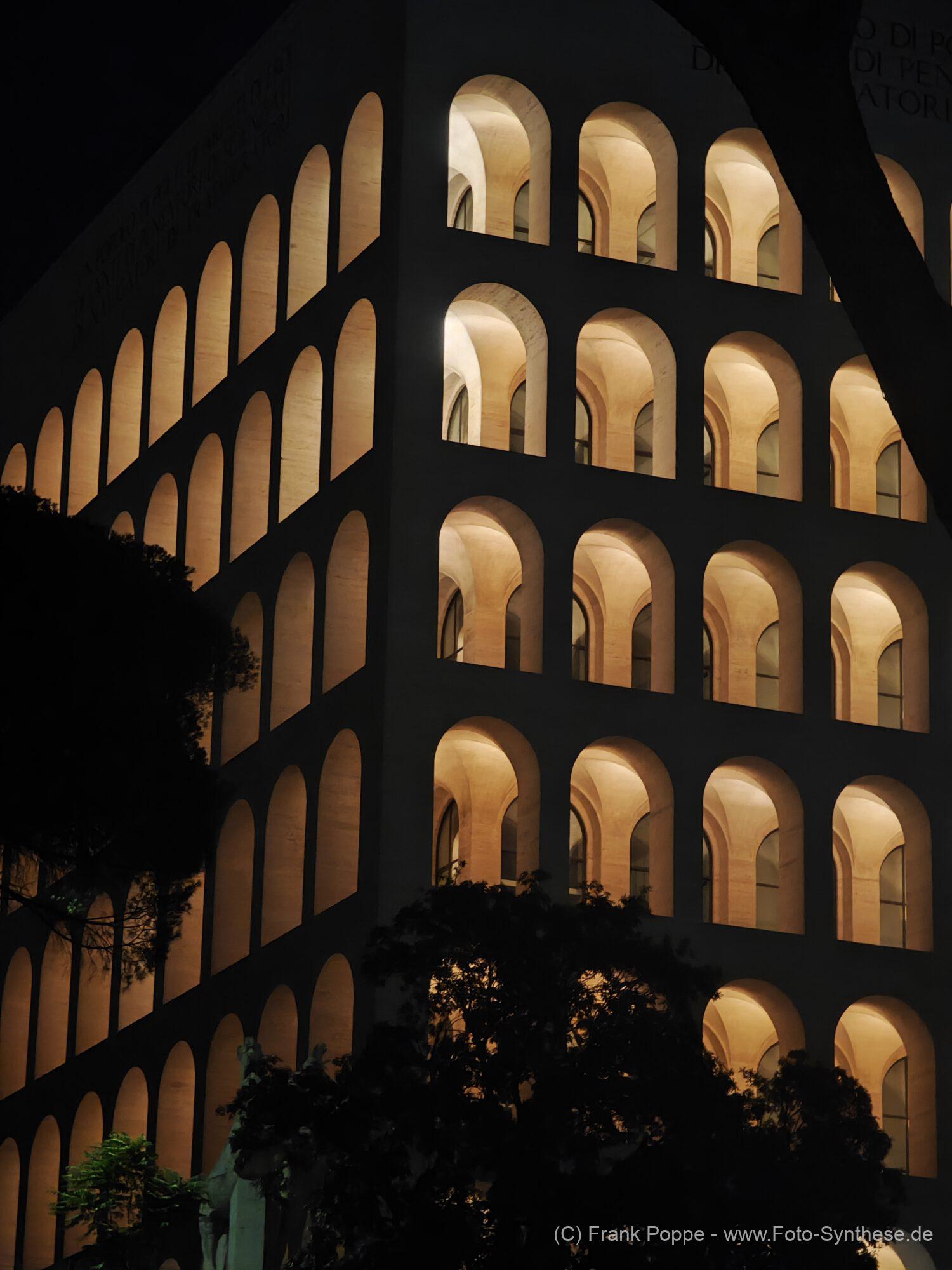 Der Palazzo della Civiltà Italiana, auch als „Quadratisches Kolosseum“ bekannt, ist ein ikonisches Bauwerk im Viertel EUR in Rom. Er wurde in den 1930er-Jahren als Teil des von Benito Mussolini geplanten Projekts für die Weltausstellung 1942 entworfen, welche die antiken und faschistischen Ideale in monumentaler Architektur verkörpern sollte. Das Gebäude zeichnet sich durch seine schlichte, geometrische Struktur aus, mit einer Fassade, die durch zahlreiche symmetrische Bögen geprägt ist und an das Kolosseum erinnert – daher der Spitzname.