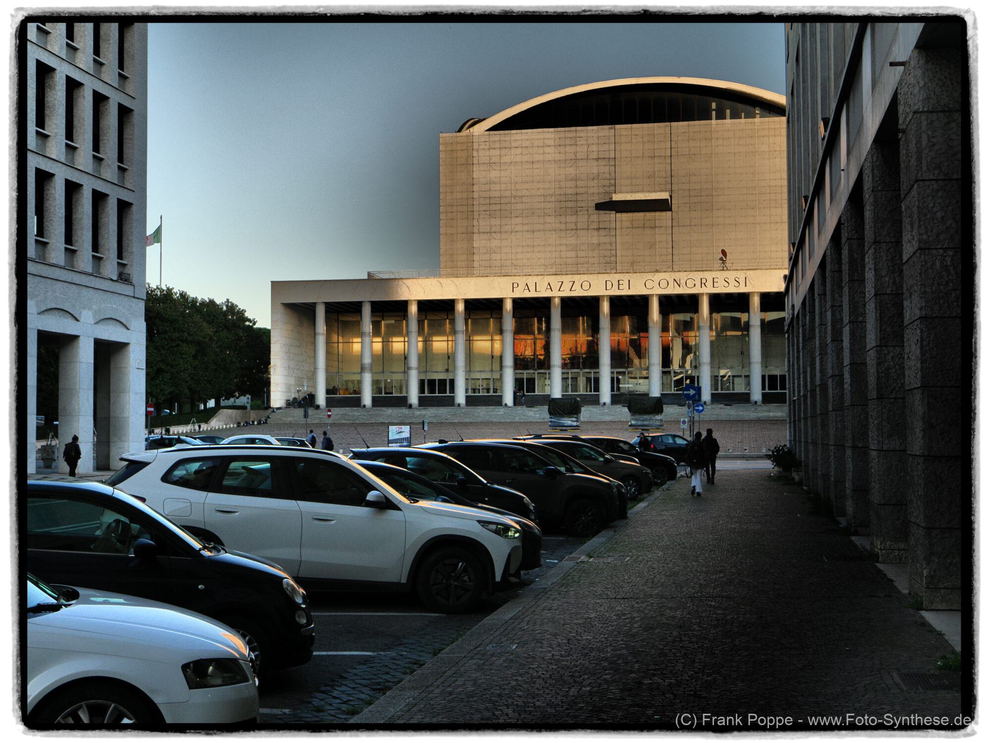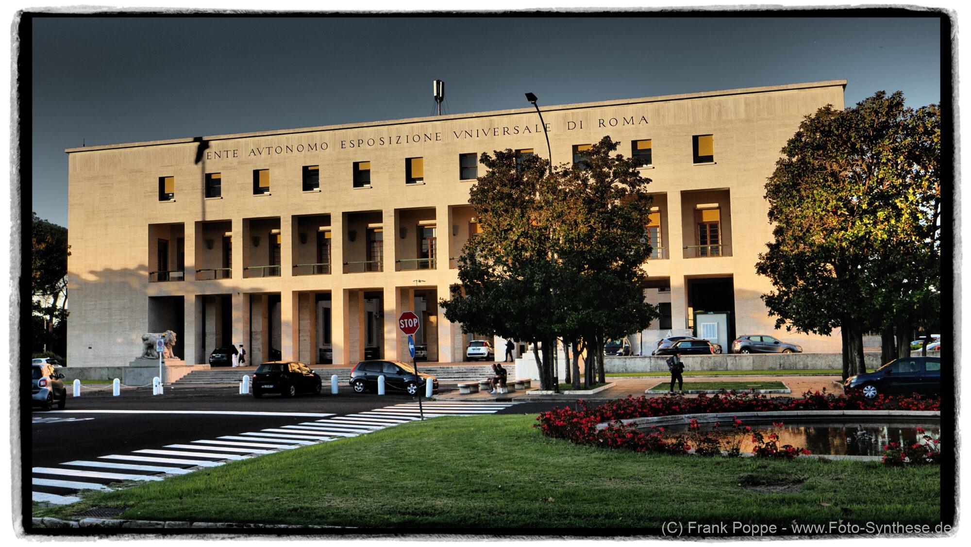 Das römische Viertel EUR (Esposizione Universale di Roma) wurde ursprünglich in den 1930er-Jahren unter der Leitung des Architekten Marcello Piacentini für die geplante Weltausstellung 1942 konzipiert, die wegen des Zweiten Weltkriegs nicht stattfand. EUR liegt etwa zehn Kilometer südwestlich des Stadtzentrums und zeichnet sich durch monumentale Architektur im Stil des italienischen Rationalismus aus, der von klassischer Antike inspiriert ist und gleichzeitig die Ideale des damaligen faschistischen Regimes reflektiert. Berühmte Gebäude wie das „Quadratische Kolosseum“ (Palazzo della Civiltà Italiana) und der Palazzo dei Congressi symbolisieren diese architektonische Verbindung zwischen Tradition und Moderne.