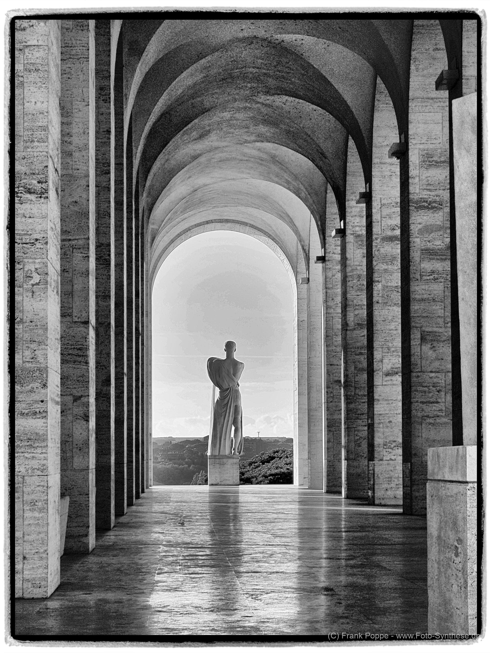 Der Palazzo della Civiltà Italiana, auch als „Quadratisches Kolosseum“ bekannt, ist ein ikonisches Bauwerk im Viertel EUR in Rom. Er wurde in den 1930er-Jahren als Teil des von Benito Mussolini geplanten Projekts für die Weltausstellung 1942 entworfen, welche die antiken und faschistischen Ideale in monumentaler Architektur verkörpern sollte. Das Gebäude zeichnet sich durch seine schlichte, geometrische Struktur aus, mit einer Fassade, die durch zahlreiche symmetrische Bögen geprägt ist und an das Kolosseum erinnert – daher der Spitzname.