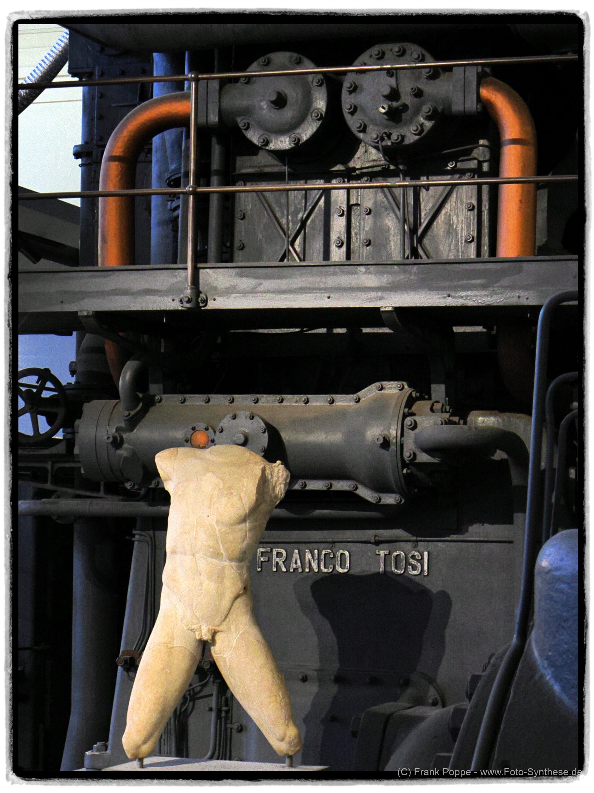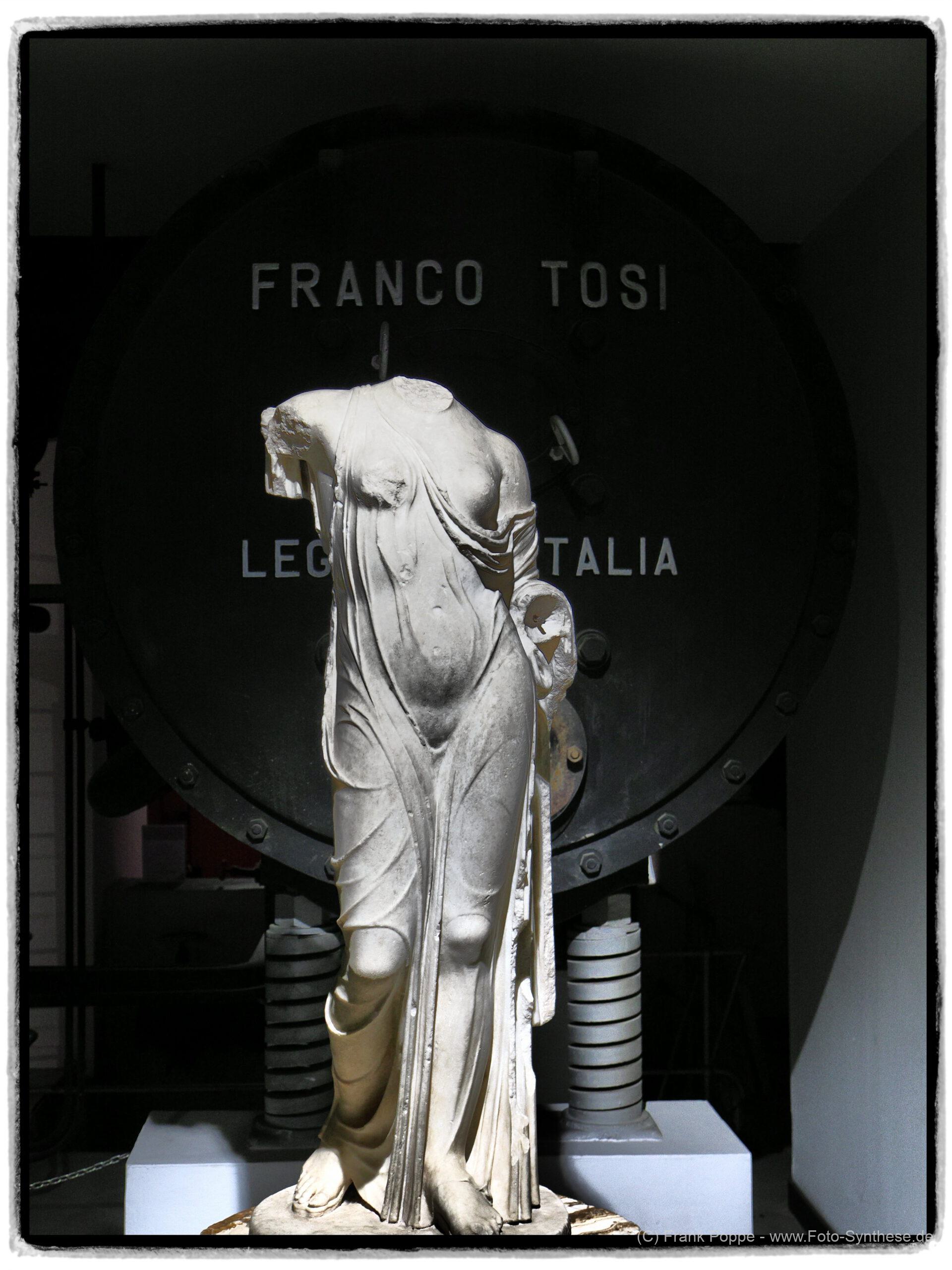 Die Ausstellung befindet sich in einem ehemaligen Elektrizitätswerk aus dem frühen 20. Jahrhundert, dessen Maschinenhalle und Kesselräume bis heute weitgehend im Originalzustand erhalten sind. Die Mischung aus Stahl, Nieten und Turbinen mit klassischer Bildhauerei schafft starke Kontraste, die fotografisch vielfältige Möglichkeiten eröffnen.